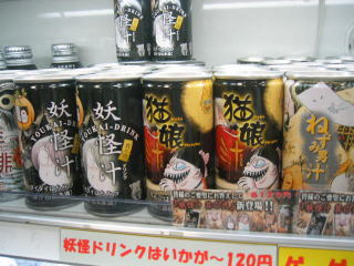 気持ち悪いドリンクあります、「ねずみ男汁」、「猫娘汁」、「みんなの汗2」、「目玉のおやじ汁」、気持ち悪そう。