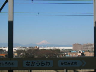 7時44分、駅から富士山が見えます、朝から縁起が良いですね。