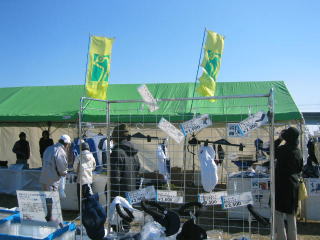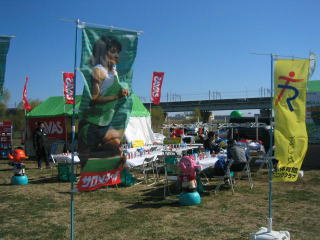 マハロ菊池さんの代々木ランニングクラブのヨヨベース、強風のためミドリが可愛いヨヨノボリが立てられません。