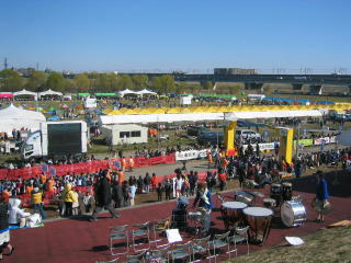 電車に乗って場所を移動、北千住付近の「虹の広場会場」です。