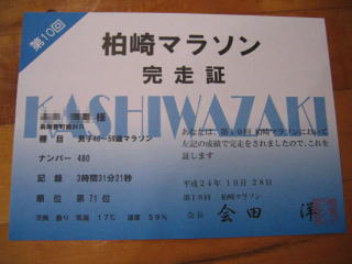 平成24年10月28日 柏崎市の「第10回柏崎マラソン大会」のフルマラソンに参加しました。
