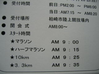 事前にナンバーカードを告げるハガキが届きます、フルは午前9時スタートです。
