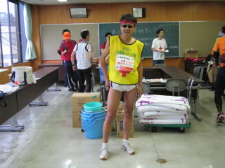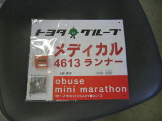 前日受付をお願いした医療支援走の世話人の色川先生から、ナンバーカードや参加賞を受け取ります、ありがとうございました。