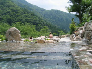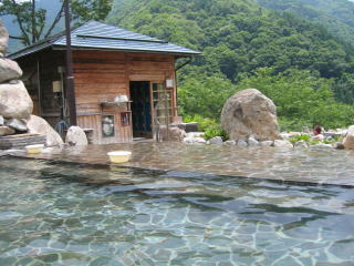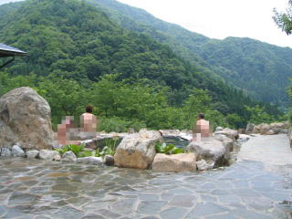 服を着て、野天風呂、望郷の湯に歩いて向かいます。