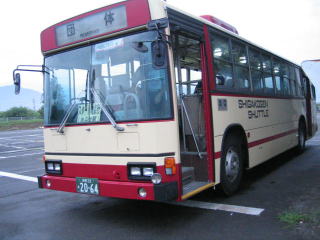仁科工業駐車場から小布施に向かってシャトルバスで移動です、無料で助かります。