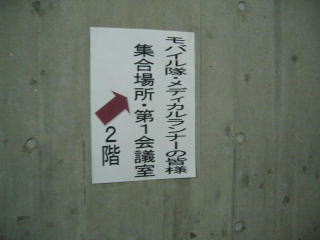 バスを降り、メディカルランナーの打合せ会場に向かいます。