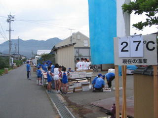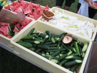 「おもてなし」のスイカ、きゅうりなどをいただきました、味噌を付けたきゅうりが特に美味しかったです。