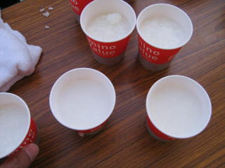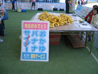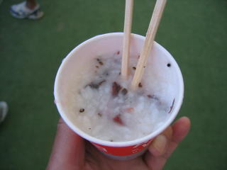 ゴールして、お水をもらい、チップを返却し、おかゆをいただきました。