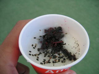 黒い棒状の物は参加賞、レジャーシート?みたいな物ですが1人位しか座れません。