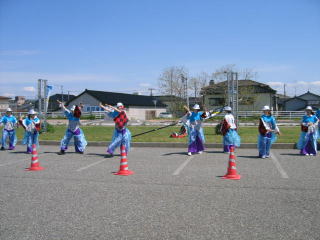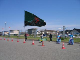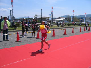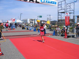 黄色いボンボリを振りながら、最後は両ボンボリ高く突き上げてゴール。