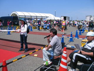 毎年、恒例のゴールするランナーを陽気に紹介する名DJ?さん、MC?さんです。