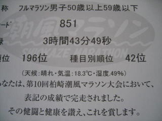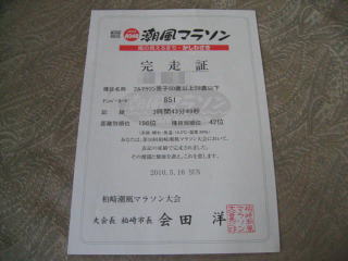 平成22年5月16日 柏崎市の「第10回柏崎潮風マラソン大会」のフルマラソンに参加しました。