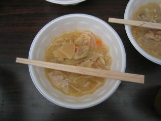 しばし休憩の後、とん汁引換券を取りに行ってとん汁をいただきました。