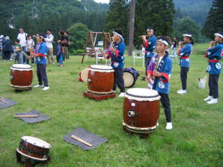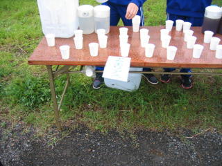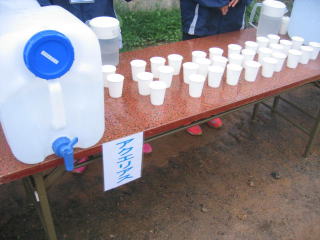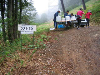 太鼓が応援、給水して急坂に備えます。