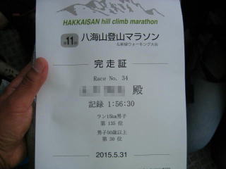 完走証、タオルをもらいました。