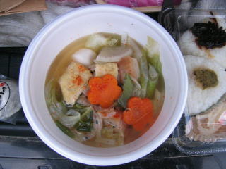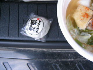 とん汁、地酒まんじゅう、おにぎりをいただきます。