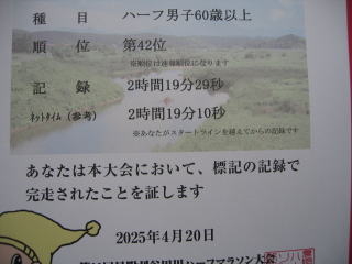 令和7年4月20日、見附市の「第11回見附刈谷田ハーフマラソン大会」のハーフ(ハーフ127戦目)にに参加しました。