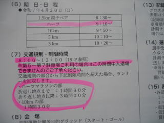 大丈夫だとは思いますが、制限時間の確認、折返し1時間30分、ゴール3時間です。