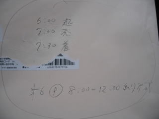 当日は6時に起きて7時に出発予定です。