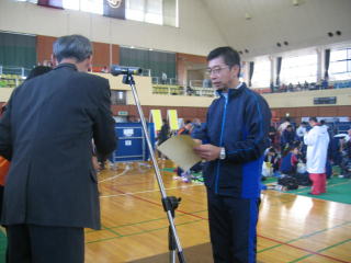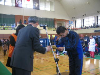 しかたがないので再び1階へ行き、連続出場表彰席の脇の隅に陣取りました。