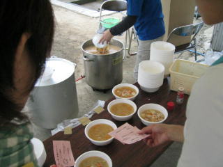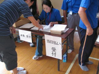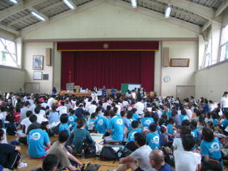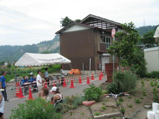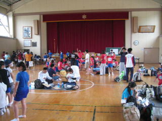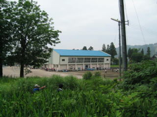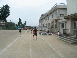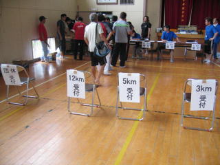 駐車場は高台にあるので下って行くと受付会場の川井小学校が見てえてきます。
