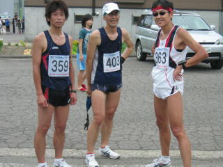 ゴール後の三人です。ジトッと暑いので止まると汗が噴出してきます。