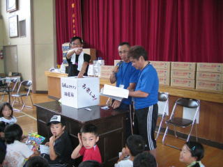 最初に抽選会、花火やレジャーシートなどが当たるようです。
