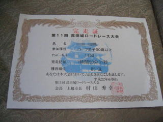 平成22年6月6日 上越市の「第11回高田城ロードレース大会」のハーフに参加しました。
