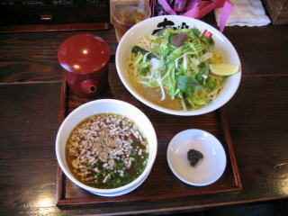 昼の部限定「辛しおとんこつ」大盛と、季節限定「爽辛つけ麺」大盛です。
