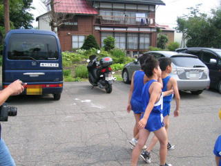 十日町赤シャツのボク、こんなに小さいのに3キロを走りきるなんて立派です。