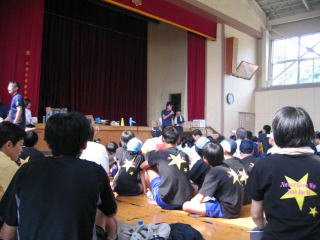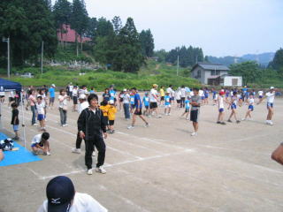競技上の注意などを聞いて、グラウンドでウォーミングアップの開始です。
