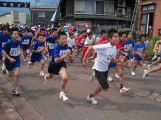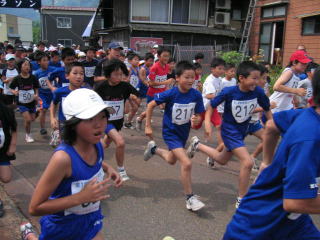 係の人の注意もあり、今年は転倒者もなく、全員綺麗なスタートです。