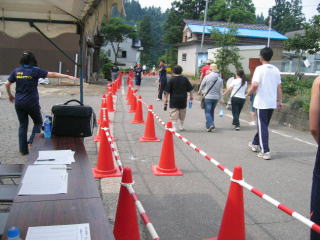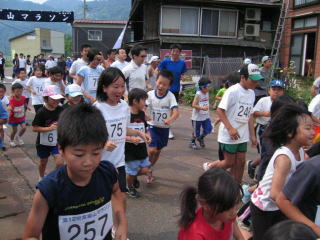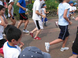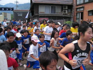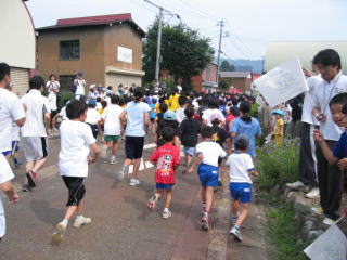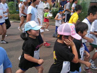 小学生3キロのスタートが終わり、30分後の5、12キロのスターに備えます。