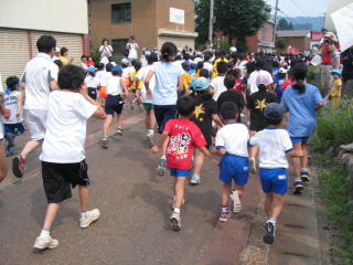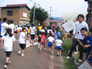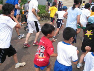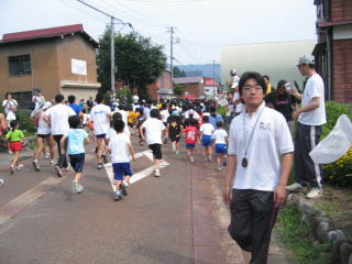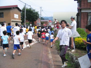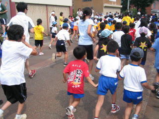最後尾付近にナンバーカードのない大人も何人かいる様、監視員かPTAでしょうか?