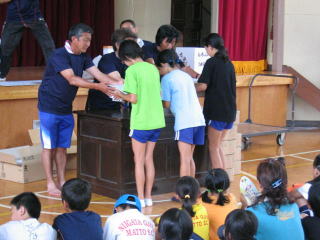 記録集計の間に川井小学校校長先生を抽選者にして、抽選会が始まります。