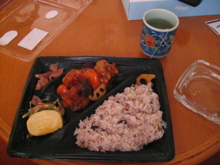 午前7時に起きて、昨日買っておいた弁当をいただきます。