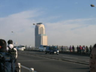 いつも目標にしている屋上にジェット機のようなものが載っているビルが見えてきました。