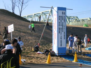 スポーツドリンクのみの給水が3ヶ所、土手の上に上る下るが2ヶ所のみでフラットなコースです。