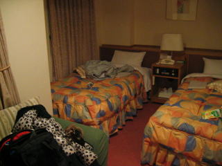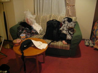 今夜は広い部屋でソファーもあり、ご機嫌です。