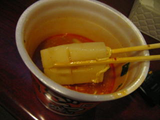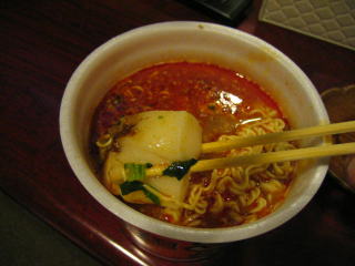 部屋で沸かしておいたお湯でカップ麺を造り、お餅2個を入れました、カロリーメイトもいただいて出発です。