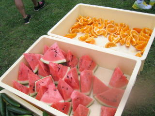 ゴール後のおもてなしです、塩分が出たせいか味噌きゅうりが一番美味しかったです。