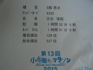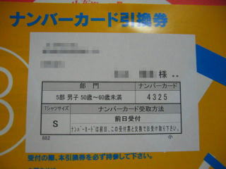 ハーフのみの大会、参加者数は8.192人です、ナンバーカードも同送して欲しいと思っています。