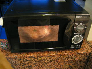 朝3時30分に起床、フロントの電子レンジでお餅を温めます。