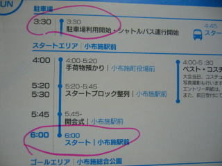 小布施町役場3階がメディカルランナーの集合場所、集合時間は午前5時です。