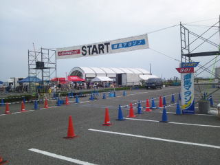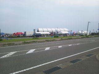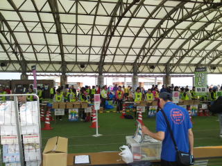 受付会場の「夕陽のドーム」です、スタート&ゴールゲートもできています。