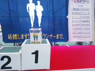 幸い歩くには全く支障なく、2キロの給水所まで戻ると、10分後スタートのハーフの先頭ランナーがきました。