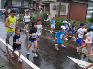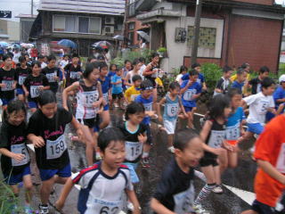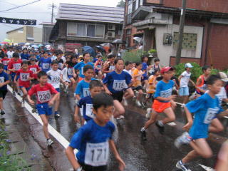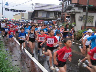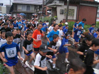 3キロ、小学生低学年、高学年、男女一斉にスタートです。