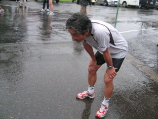 緑色シャツのゼッケン付けた男性ランナーさんは12キロも走っていました。