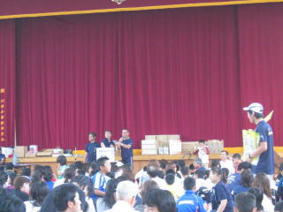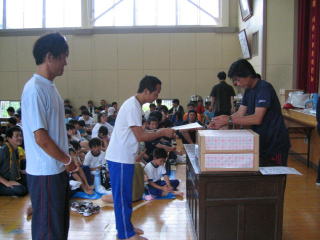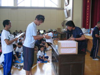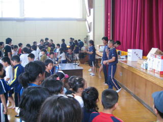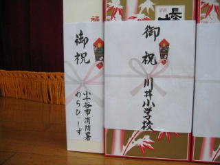 駐車場から5分位歩いて、受付会場の川井小学校に到着です。