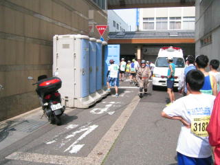 スタートライン近くの、スタート前給水は助かります。